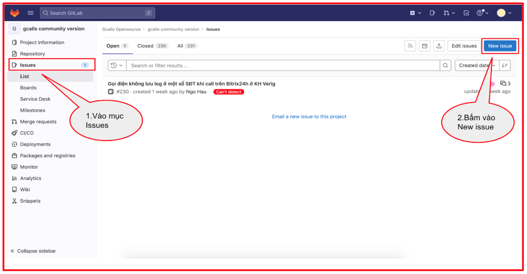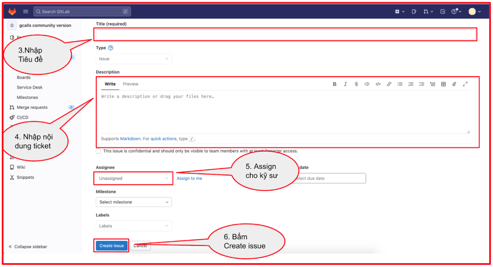 1. Quản lý ticket giao tiếp với kỹ thuật trên Gitlab