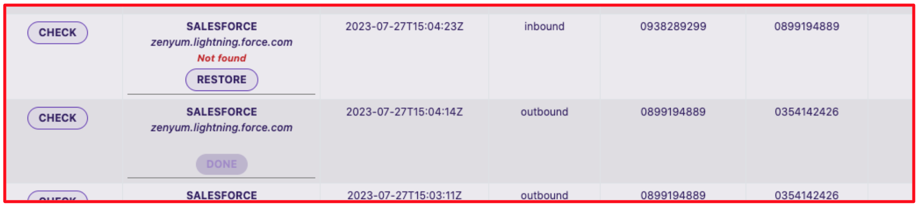 2. Sử dụng CDRs phục hồi lịch sử dụng cuộc gọi trên tích hợp Salesforce
