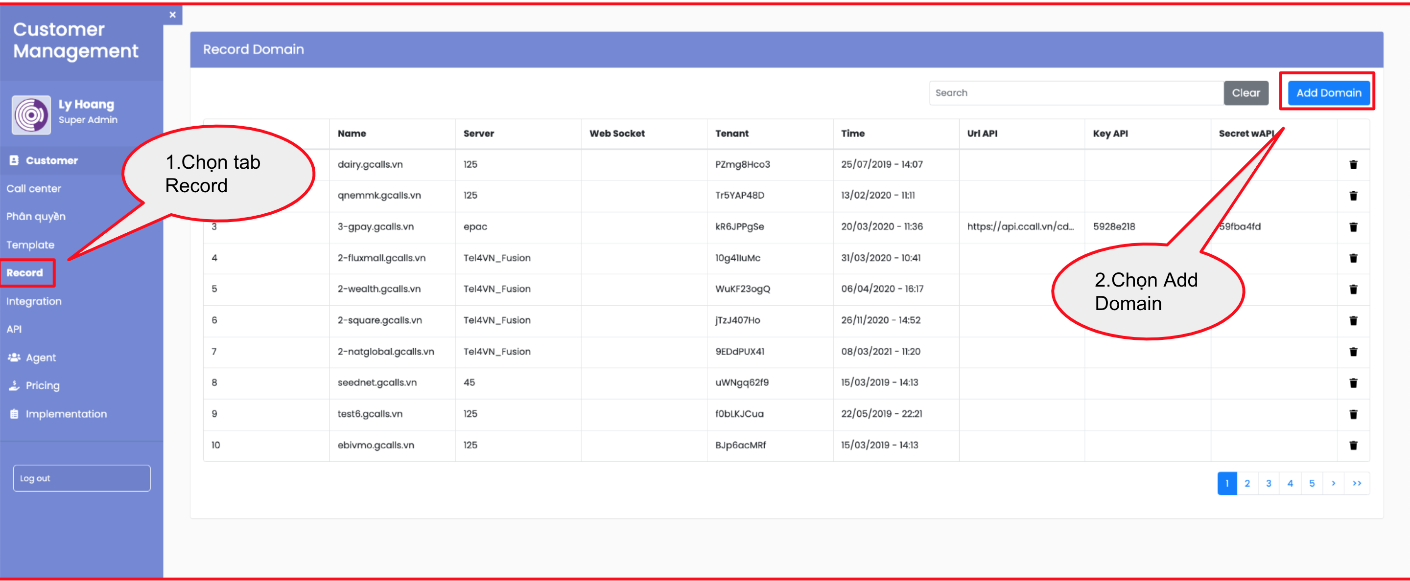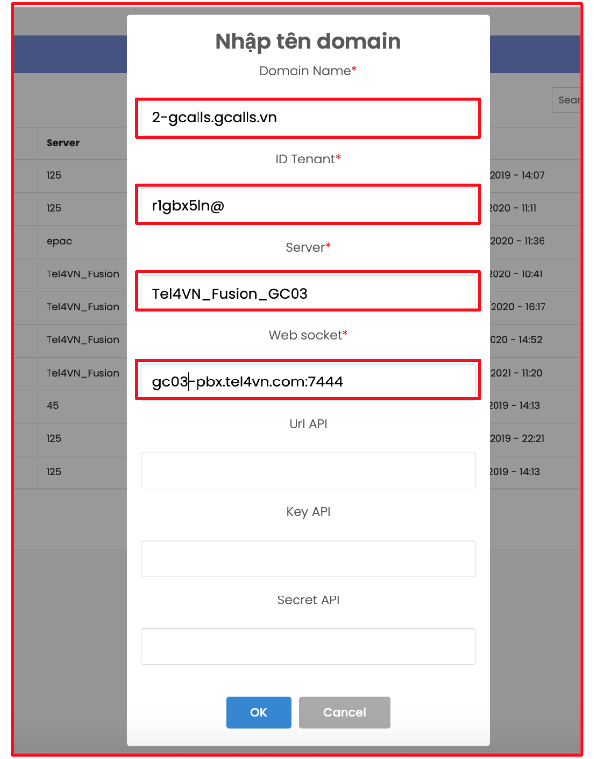 - Domain name: tên domain đã tạo trên PBX. Ví dụ: 2-gcalls.gcalls.vn