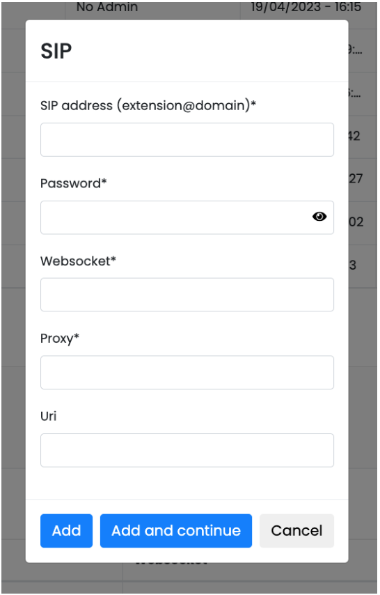 - Add SIP: thêm tài khoản SIP