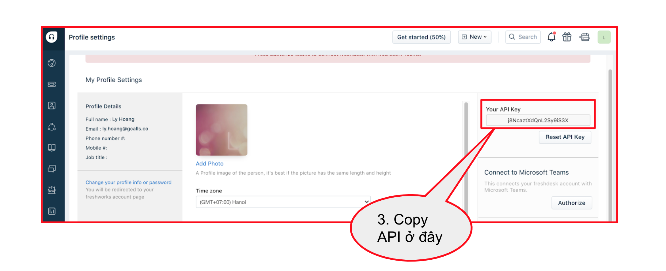 - Những chỗ được tô đậm sẽ được thay thế bằng tên miền Freshdesk của KH
