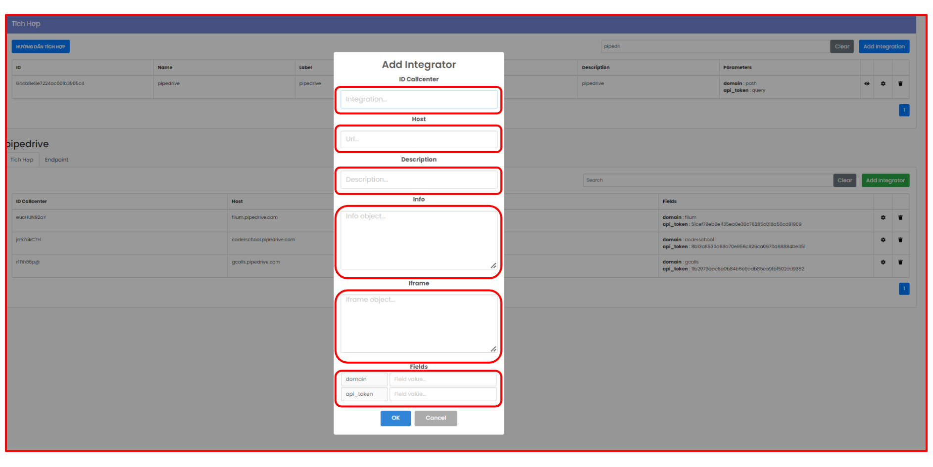 - Host: nhập tên miền của pipedrive đang tích hợp