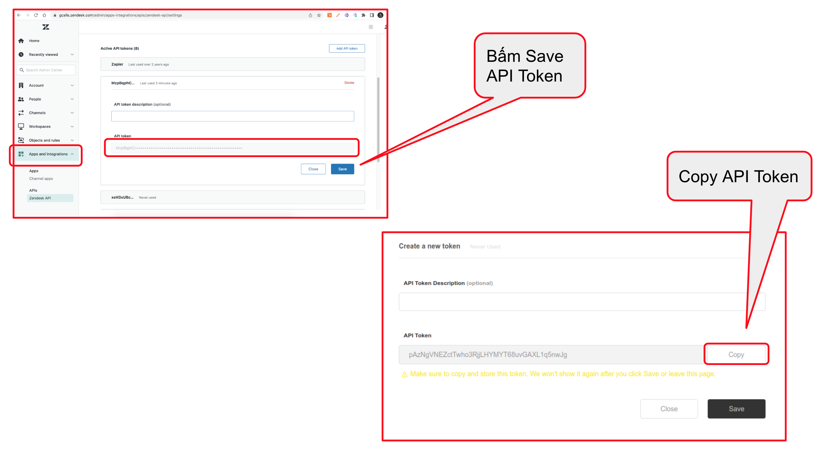 Điền vào ô trống với nội dung <email_zendesk>:/token:<api_token>.