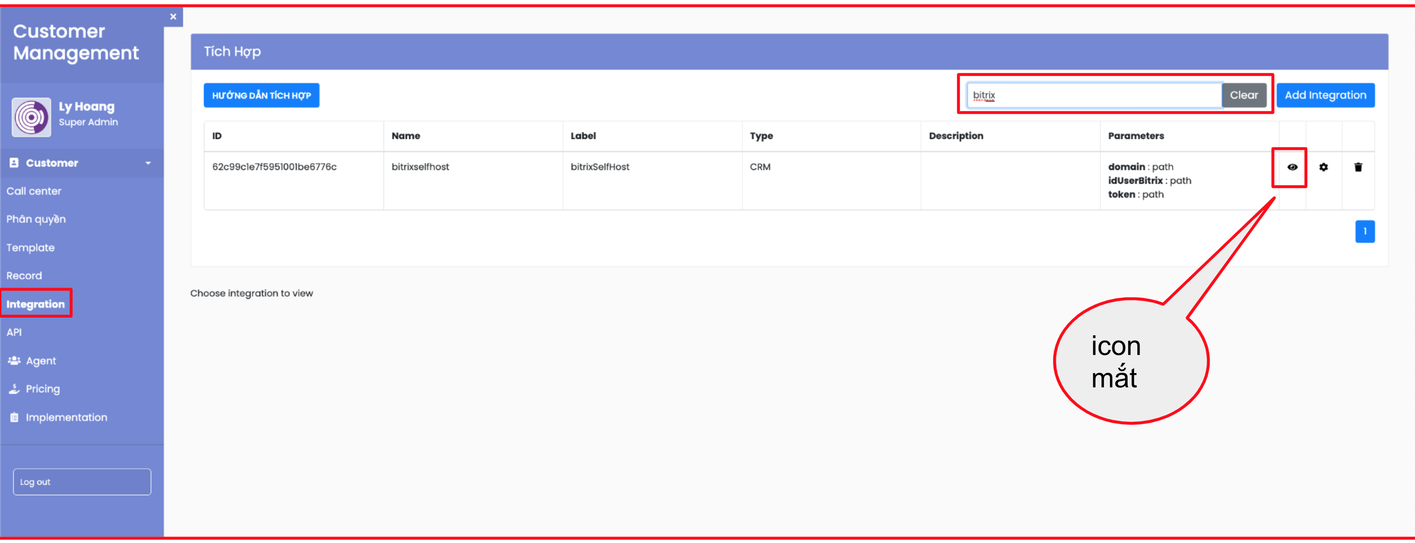 - Bấm chọn icon mắt ở tích hợp bitrix