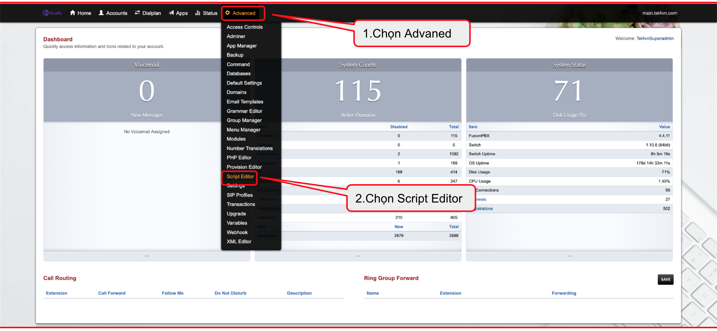 Tiến hành đăng nhập vào trang PBX có domain cần setup