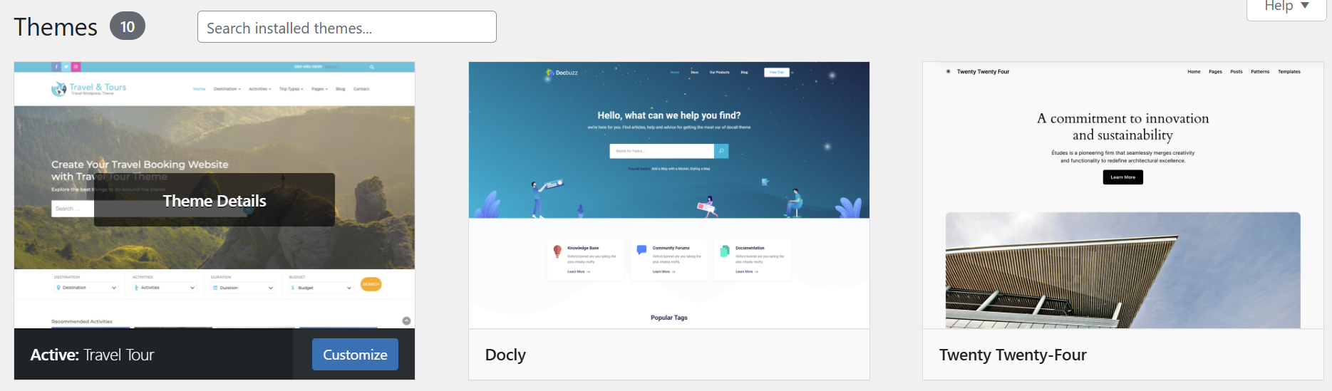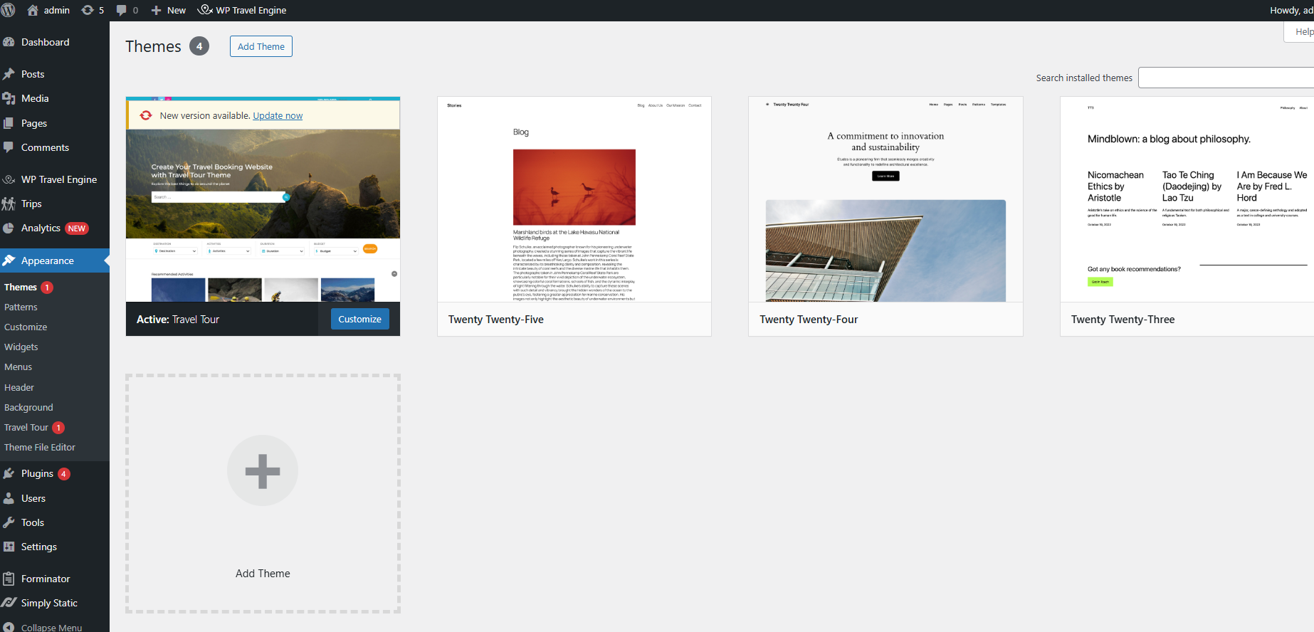 Chọn theme Travel Tour (hoặc theme bạn muốn sử dụng).