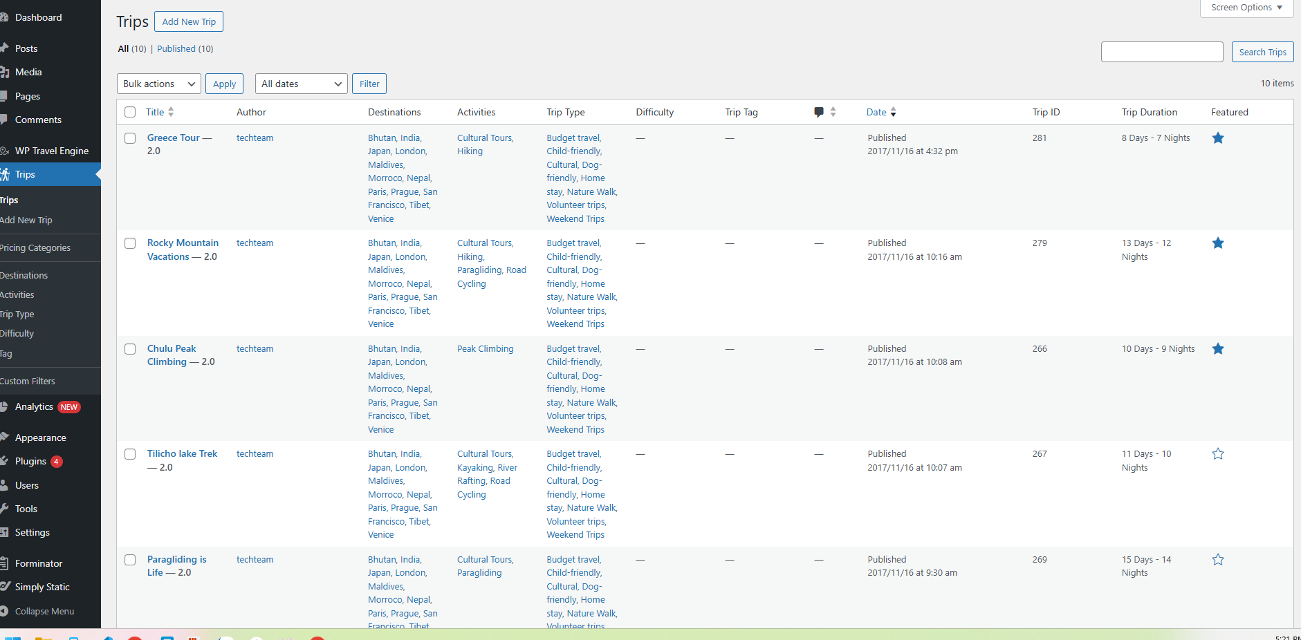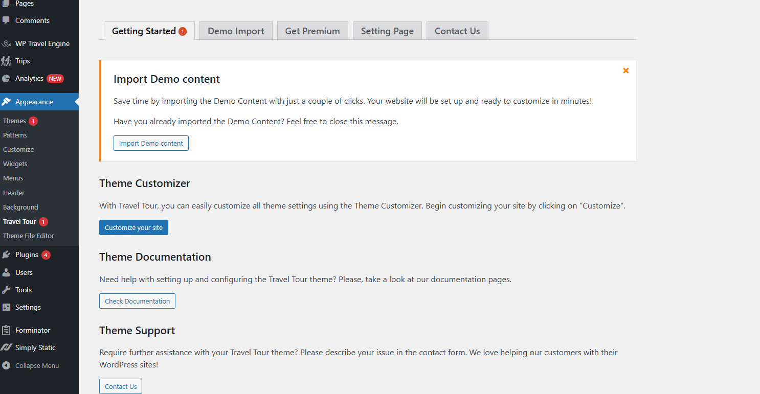 Sau khi cài xong plugin, chọn lại mục Travel Tour để bắt đầu import dữ liệu demo.