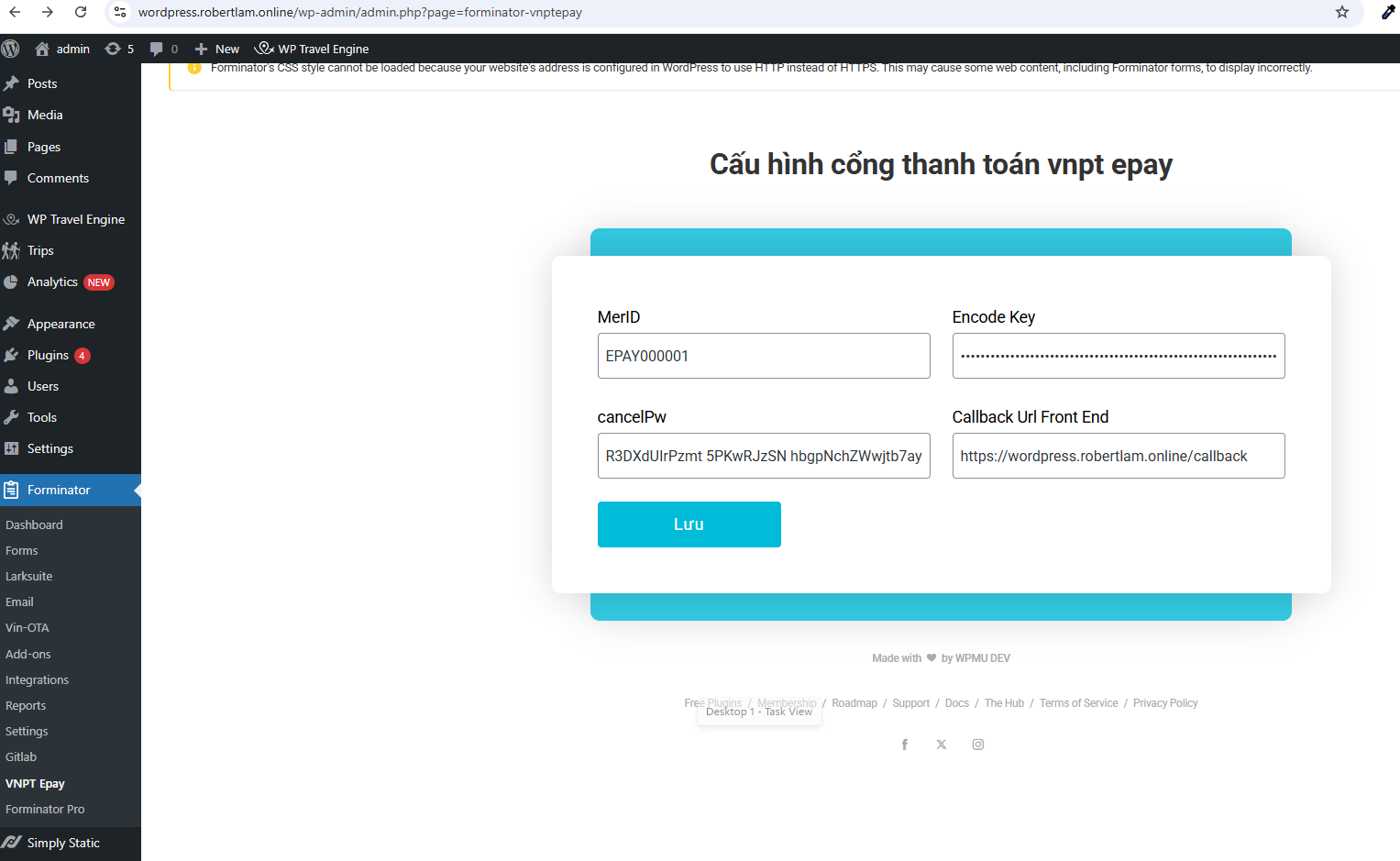 Tích hợp thanh toán với Forminator + VNPT Epay