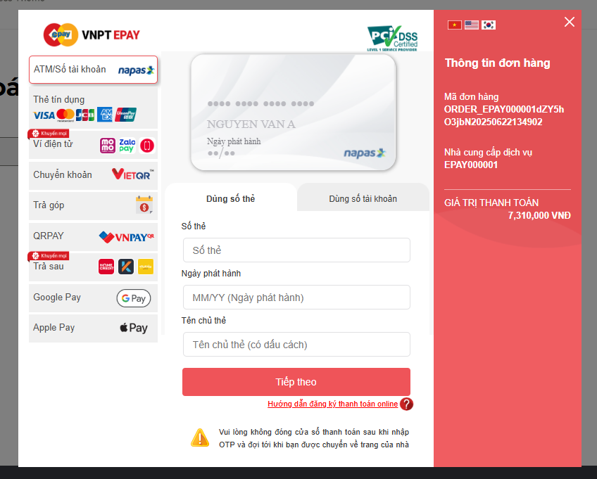 Tích hợp thanh toán VNPT Epay với VinOTA