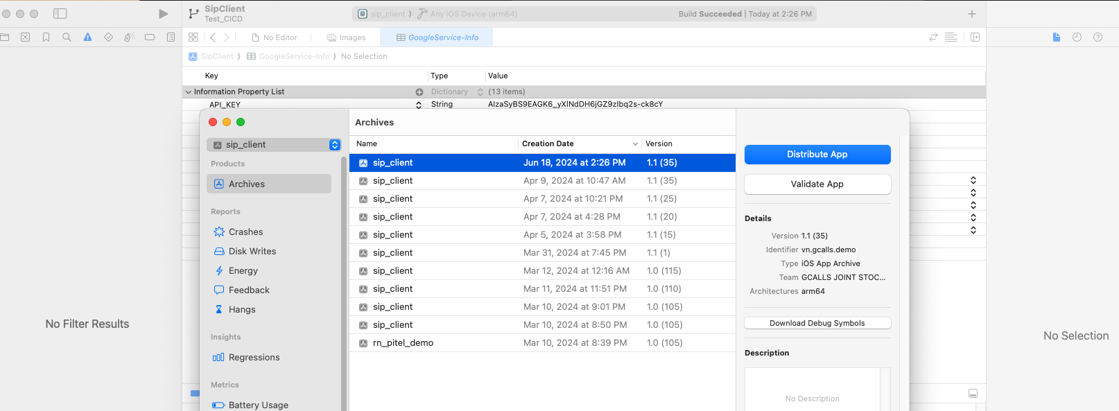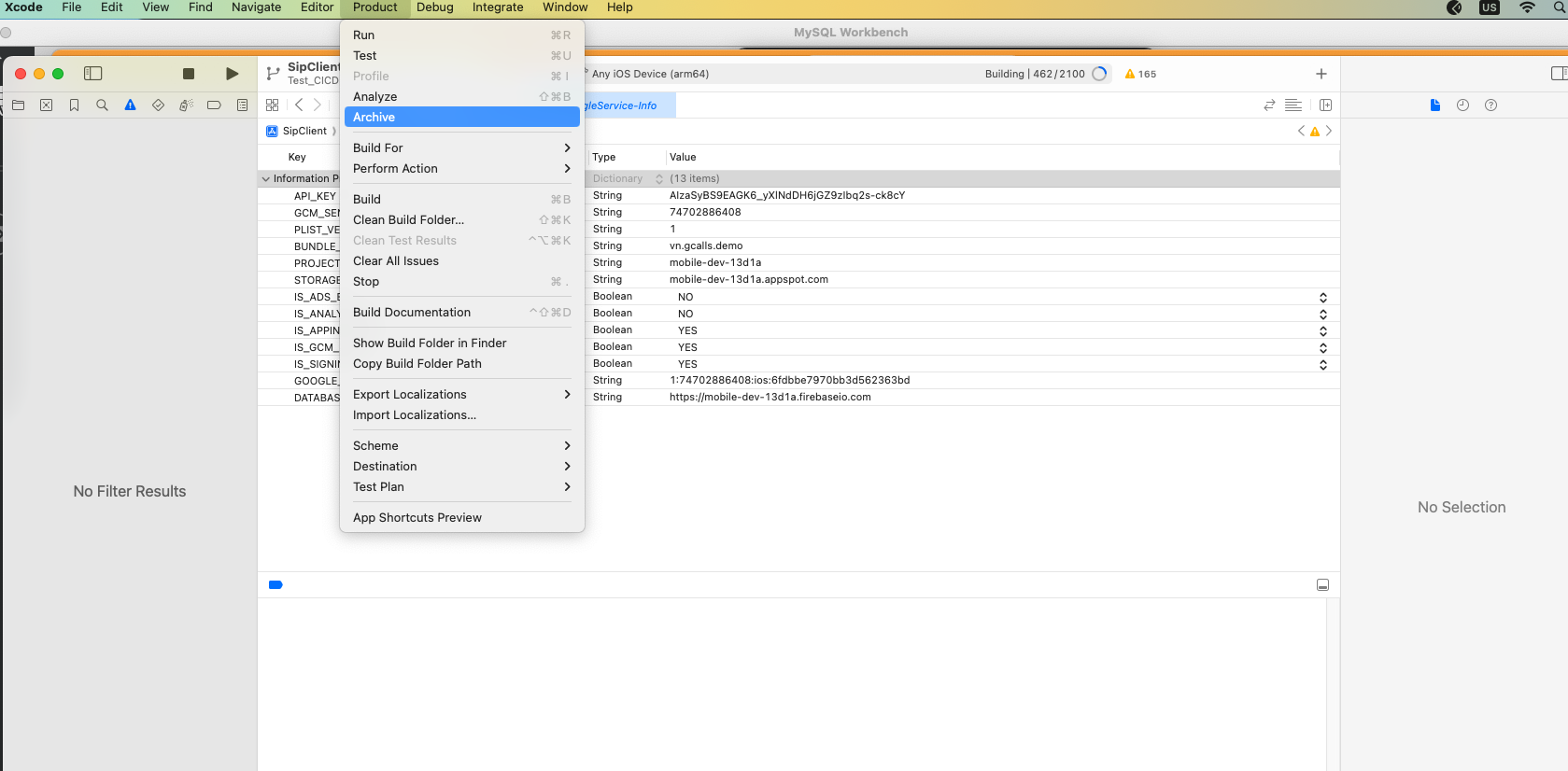 Bước 1: Mở SipClient App với Xcode, sau đó chọn product -> Archive