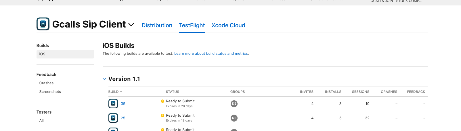 Bước 4: Kiểm tra App trên Testfligh, test App