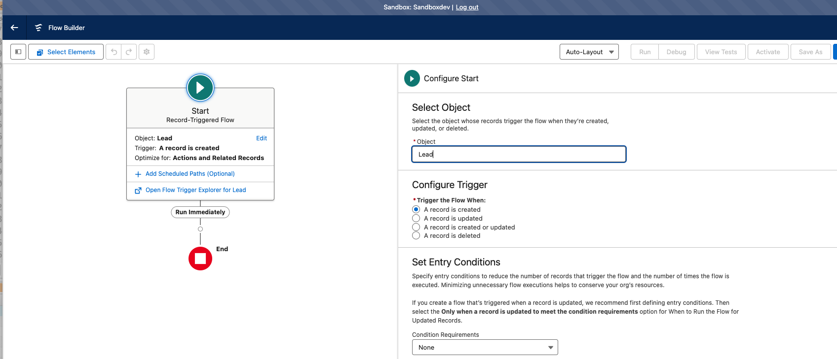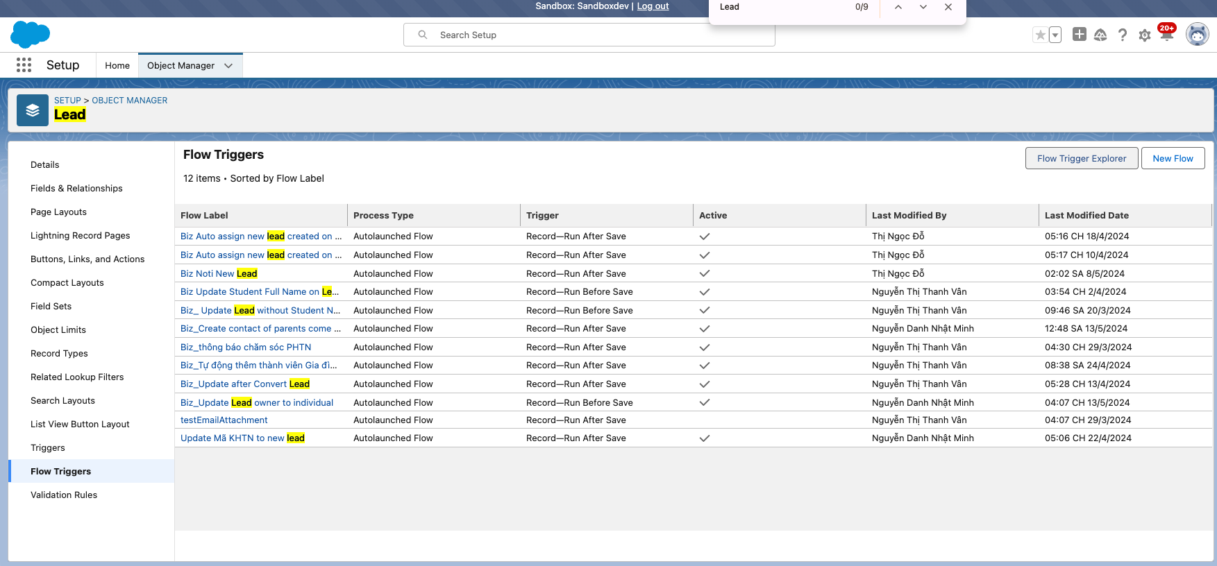 Bước 1: Vào object manager , tìm Lead, chọn flow trigger và tạo new flow