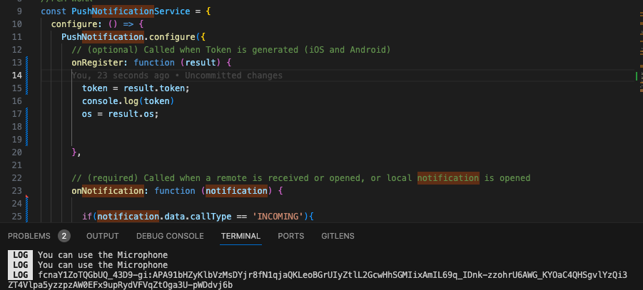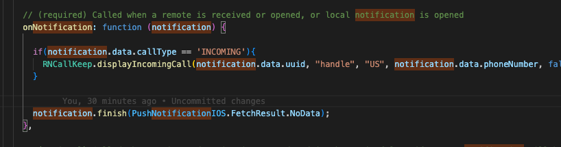 Bước 1: Tham khảo đoạn code sau khi đã set up xong react-native-push-notification và react-native-callkeep