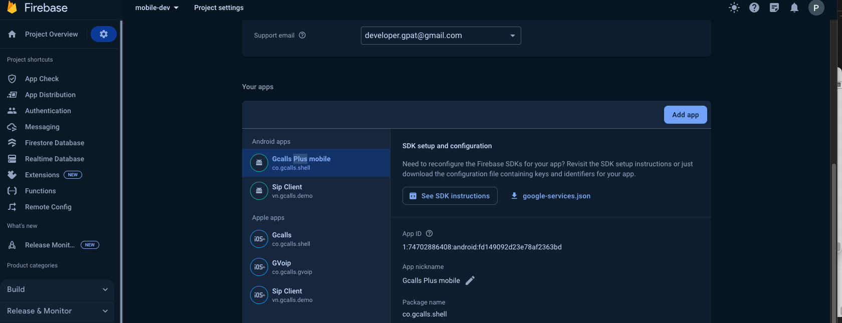 - Sau khi tạo 1 Android App trên Firebase, tải google-service.json .