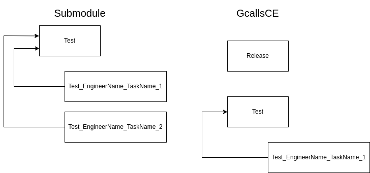Checkout tất cả submodule về Test branch và tiến hành cập nhật commit ID cho gcasllCE bằng lệnh