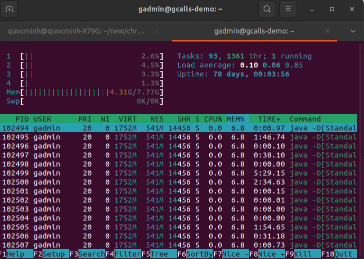 Bước 4: Đối với sourcecode chưa setup CICD trên gcallsCE thì Truy cập vào server demo