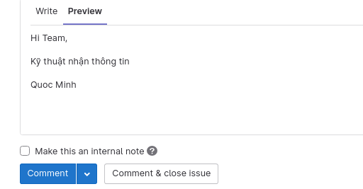- Trường hợp hoàn thành trước 12h -> Reply nghuyên nhân -> Chuyển ticket sang trạng thái Done -> Chờ CS kiểm tra và CS là người Close Issue