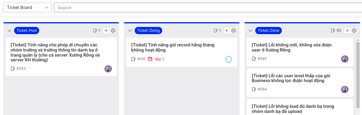 - Ở mục Issues -> Boards -> Chuyển ticket sang trạng thái Doing