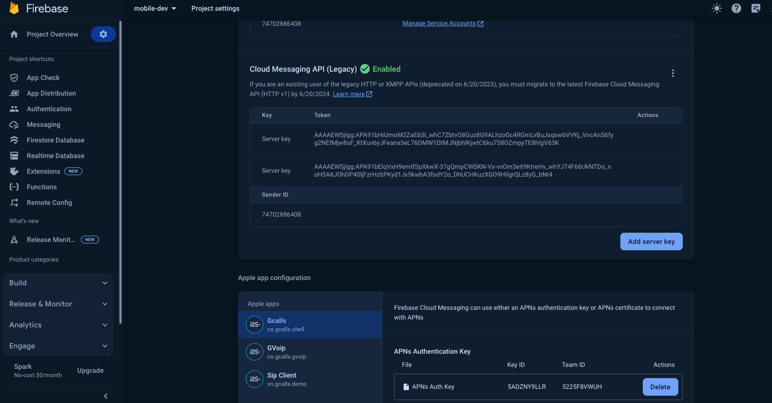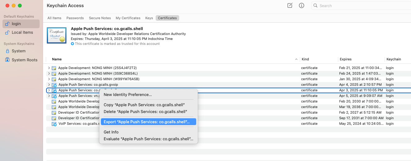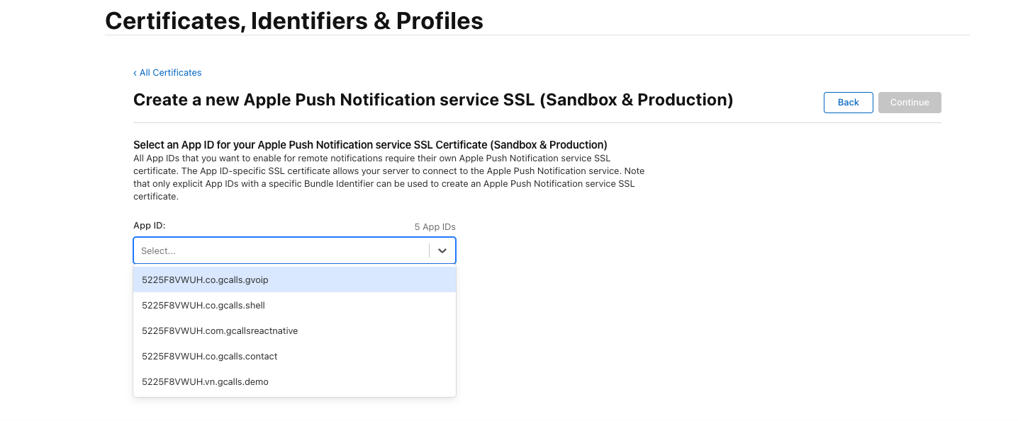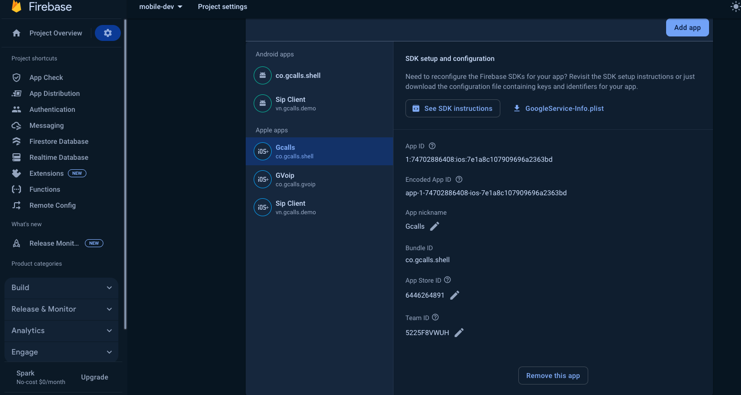 - App Id : co.gcalls.shell ( Còn được gọi là APNS topic)