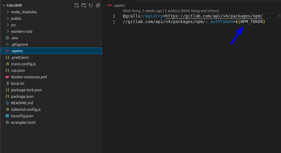 - Giá trị "Deploy tokens" này được khai báo tại file .env của callbox với key là NPM_TOKEN và được sử dụng tại file .npmrc