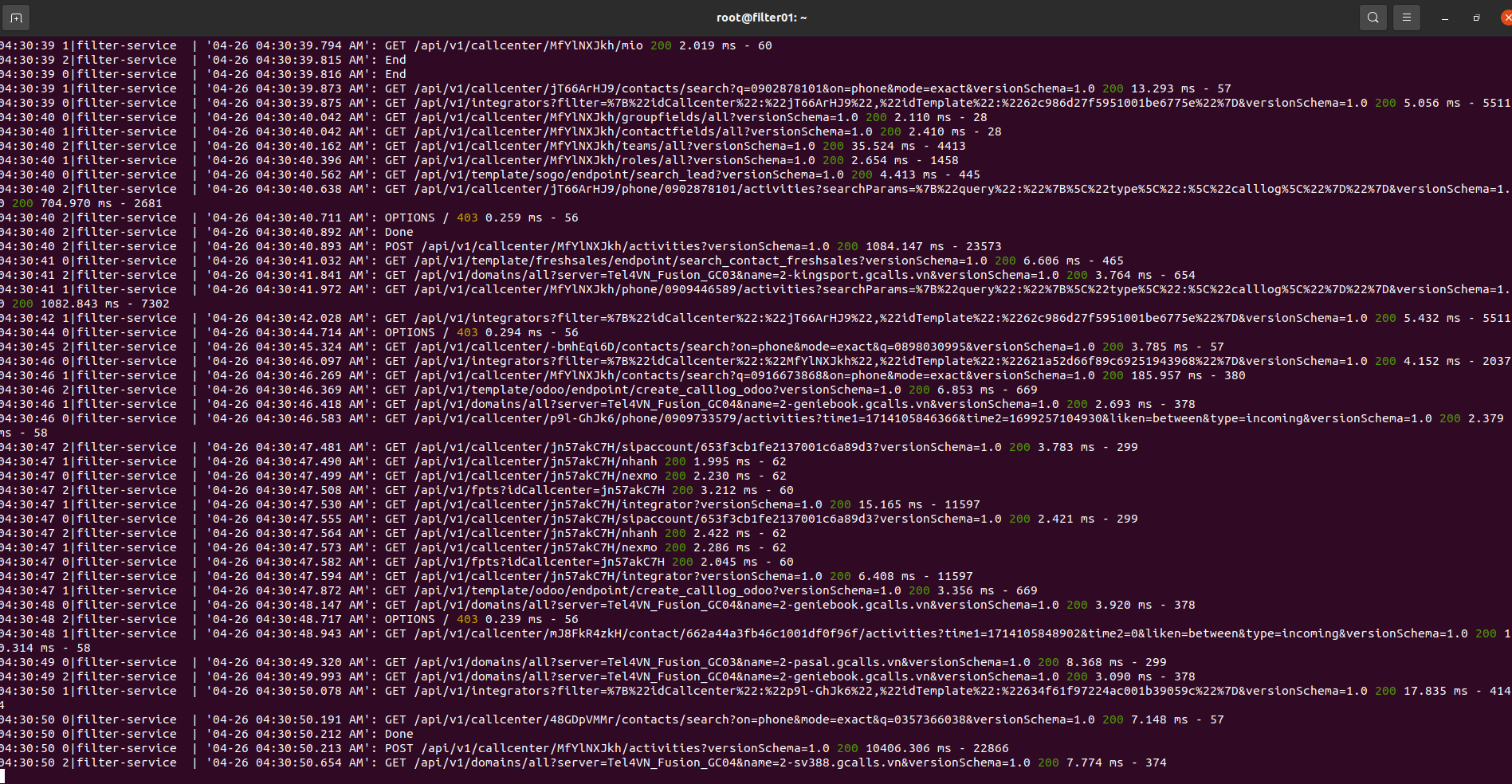 4.5. Theo dõi lịch sử và trạng thái của các request từng services qua file Log