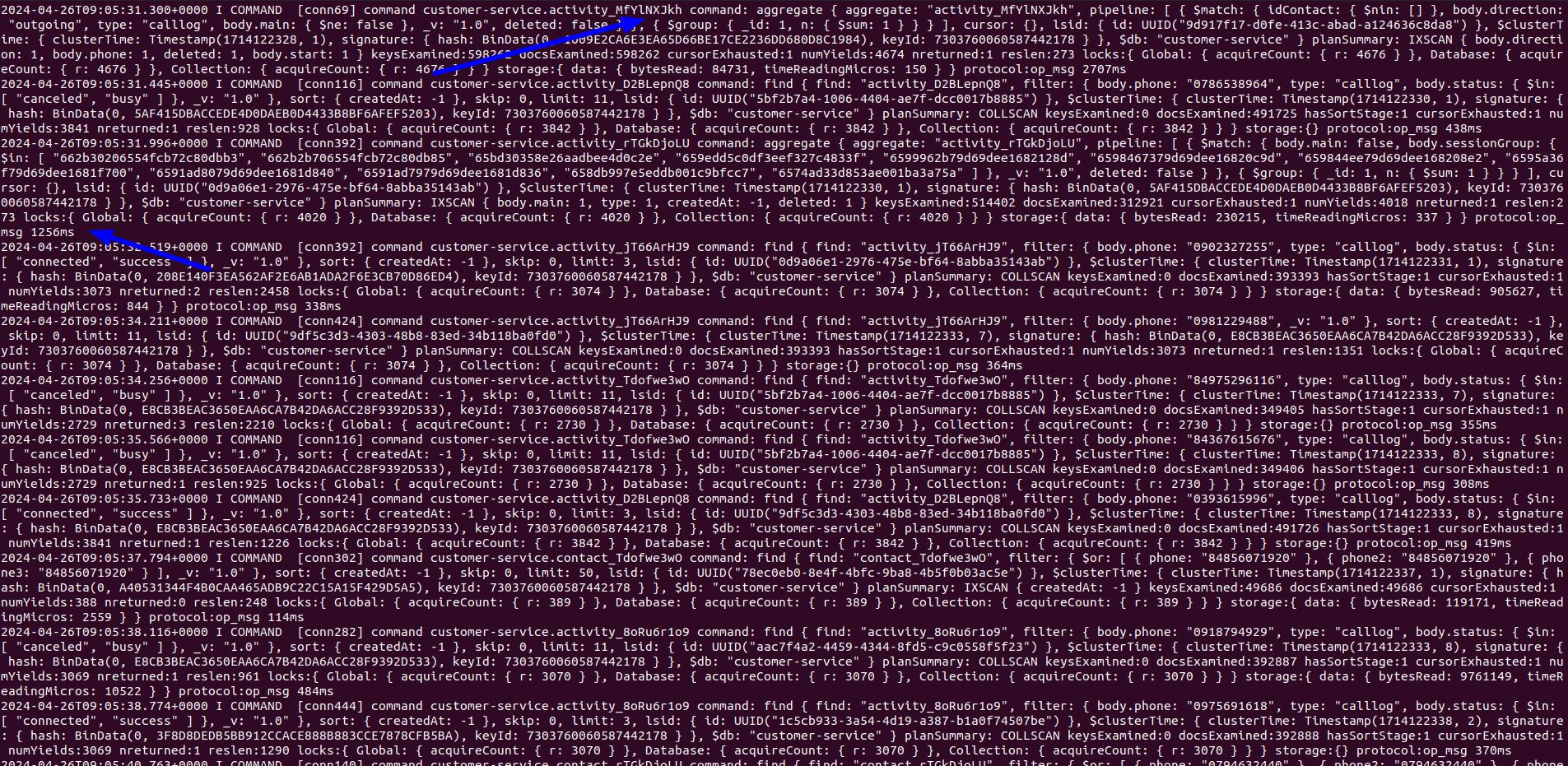 - Cách thông tin log về database như connection, error, query log, tốc độ query mongo...