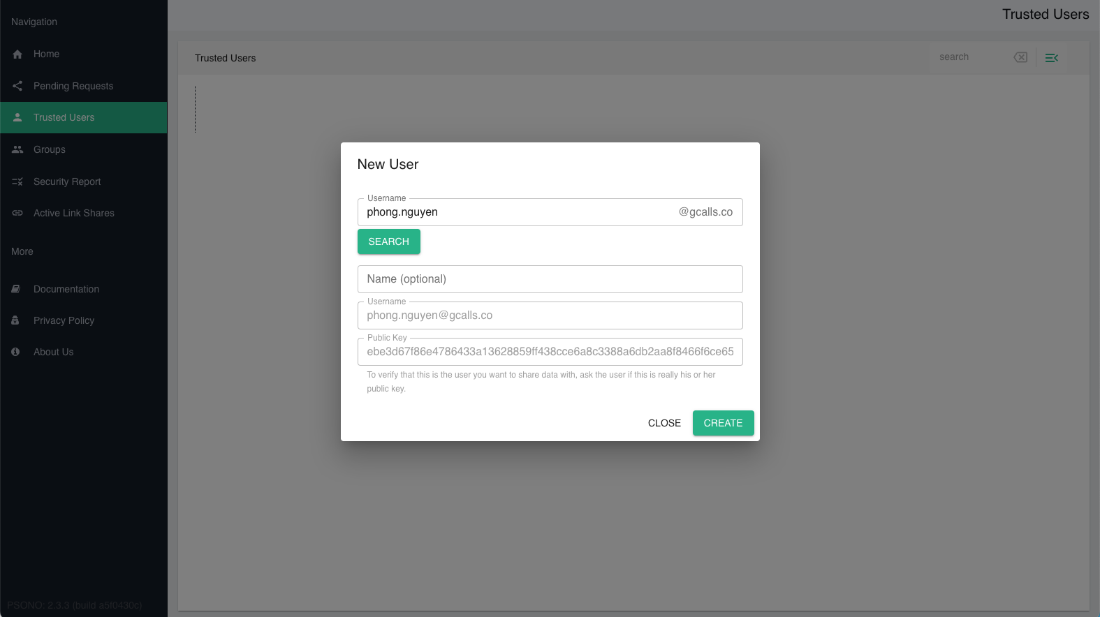 - Nhập Username Psono Cá nhân bạn cần thêm -> Nhấn "Create"