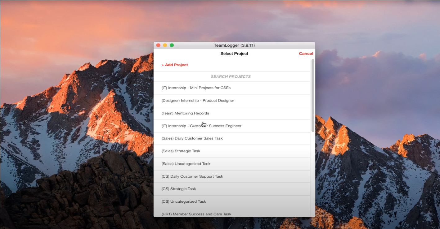 Chọn Project mà mình sẽ thực hiện vào thời gian hoặc ngày hôm đó. Bạn có thể hiểu Project là tập hợp một nhóm các công việc, trong đó có thể có một hoặc nhiều task con.