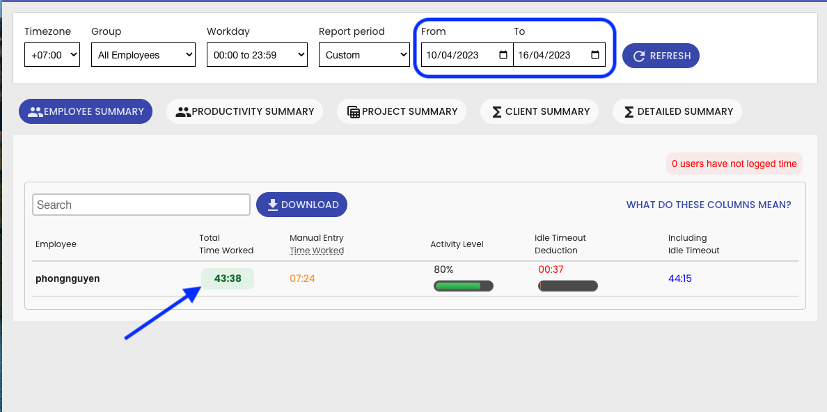 - Truy cập vào đường dẫn https://client.teamlogger.com/index.html#/app/user-report2