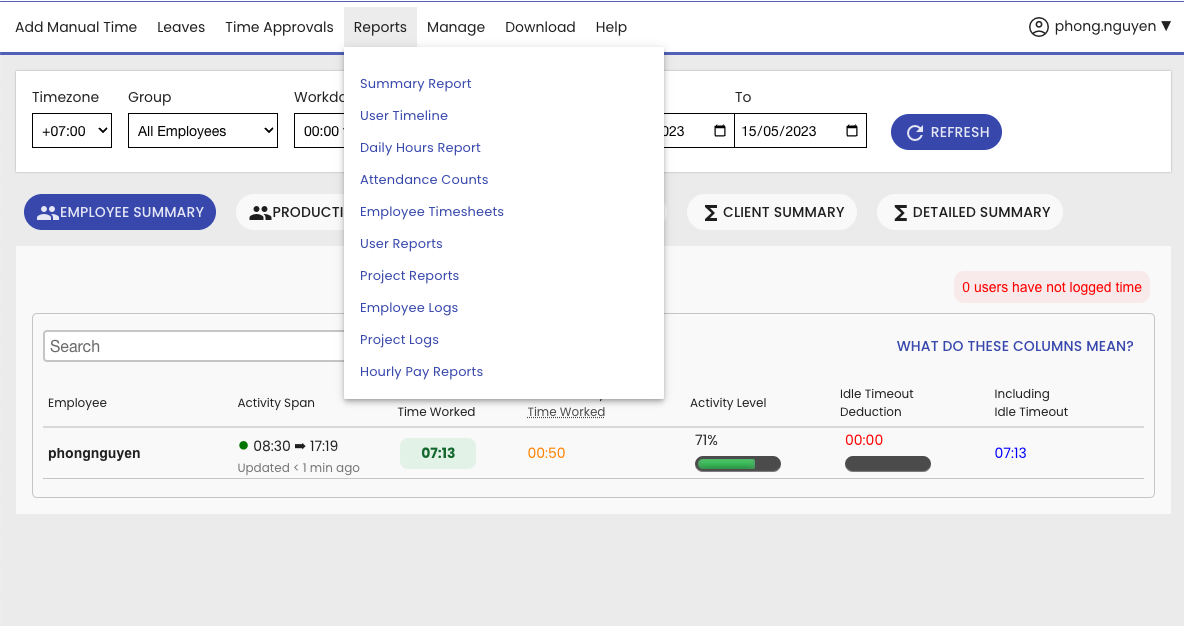 Những loại report khác bạn có thể tham khảo tại: https://client.teamlogger.com/#/app/overview