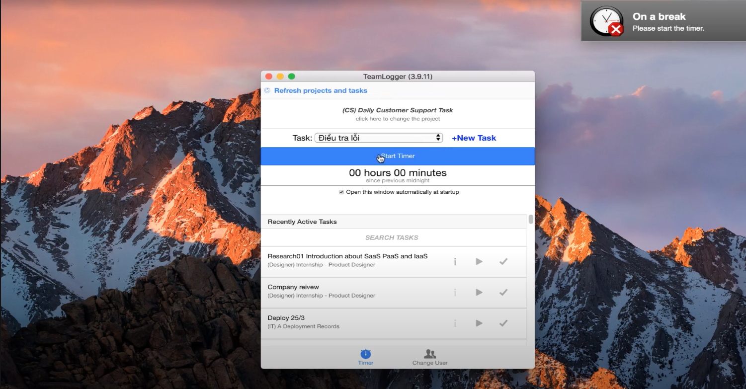 - Sau khi biết cách sử dụng và nguyên tắc làm việc với TeamLogger. Bạn đã có thể tạo task và thực hiện công việc của mình.